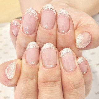 自爪が短いショートネイルさんにも グラデーション ビジュー 上品シンプル Salon Clover サロンクローバー